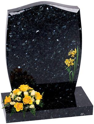 The ogee shape and Black polished granite is the perfect canvas for a design of flowing script and an intertwining English rose.