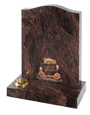 Subtle features enhance this teddy bear shaped memorial. The base has a centre splay adding extra inscription space. Black granite and Balmoral Red granite options are shown here.