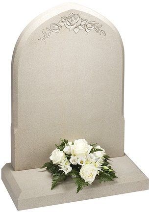 A deep carved floral design is used to great effect on this unique shaped Serena stone memorial.