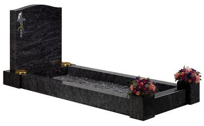 The Imperial Green granite set below comprises the ‘Newsham’ set with a ‘Stamford’ headstone shown here with an alternative ‘Rose Bowl’ ornament. This set could be further enhanced by choosing an optional kerb profile.