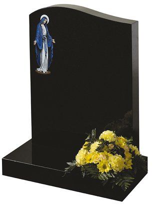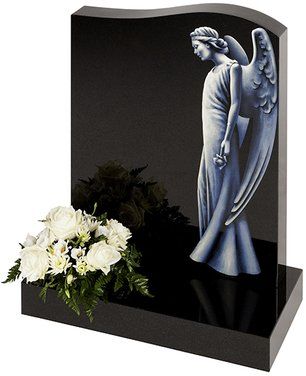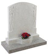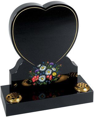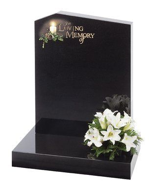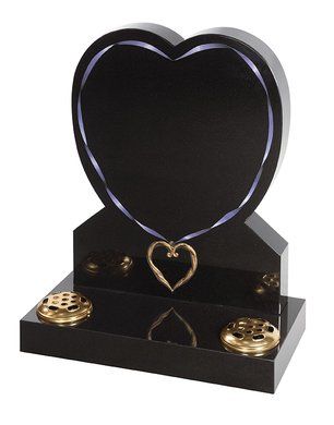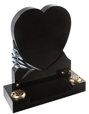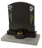 Lilies are a long established symbol of mourning. They are shown here carved on a contemporary heart shaped stone with either natural, unpainted flowers or with an ‘antiqued’ paint effect. Shown in Black granite.