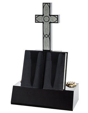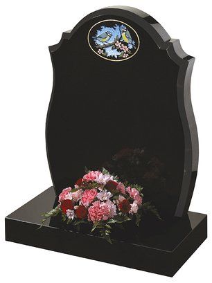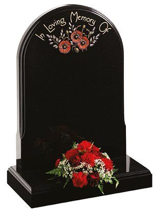 The ogee shape and Black polished granite is the perfect canvas for a design of flowing script and an intertwining English rose.