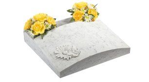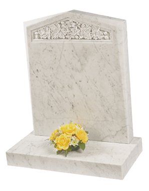 A deep carved floral design is used to great effect on this unique shaped Serena stone memorial.