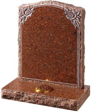 The Witham features natural looking pitched edges with roses either top or bottom. Shown here without pin line in South African Dark Grey granite on a foundation base stone.