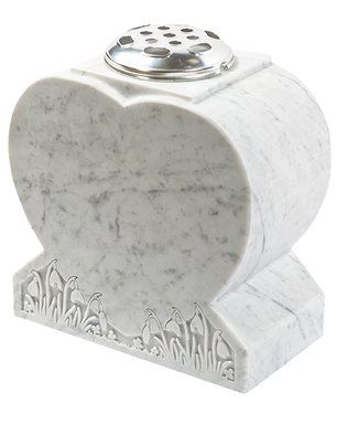 Love and affection are conveyed through the harmonious pairing of a heart with roses shown in White Marble.