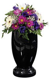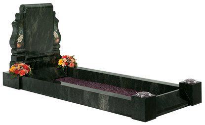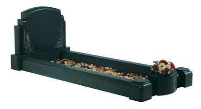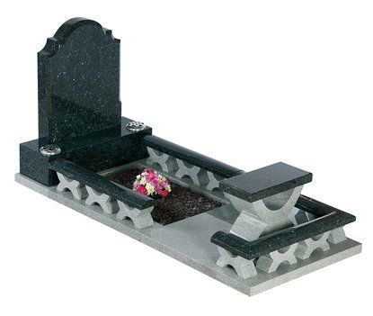 The Imperial Green granite set below comprises the ‘Newsham’ set with a ‘Stamford’ headstone shown here with an alternative ‘Rose Bowl’ ornament. This set could be further enhanced by choosing an optional kerb profile.